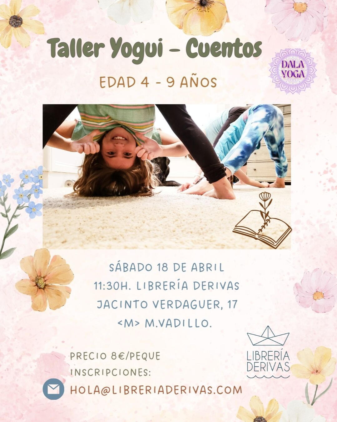 Abril está asociado al crecimiento, al aumento de luz, a la renovación y el florecimiento de la naturaleza. Seguro que estos días de vacaciones habéis tenido, como nosotrxs, ocasión de disfrutar y cargaros de esta luz y naturaleza exhuberantes. Con esta frescura aún en los sentidos, os presentamos el siguiente taller de Yogui-Cuentos:El taller será el Sábado 18 en la Librería Derivas, a las 11:30h; precio 8€ por cada peque.Inscripciones en el botón de abajo: